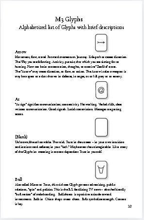 You can buy a set of cards, and an introductory booklet to get you started with the M3 Glyphs.